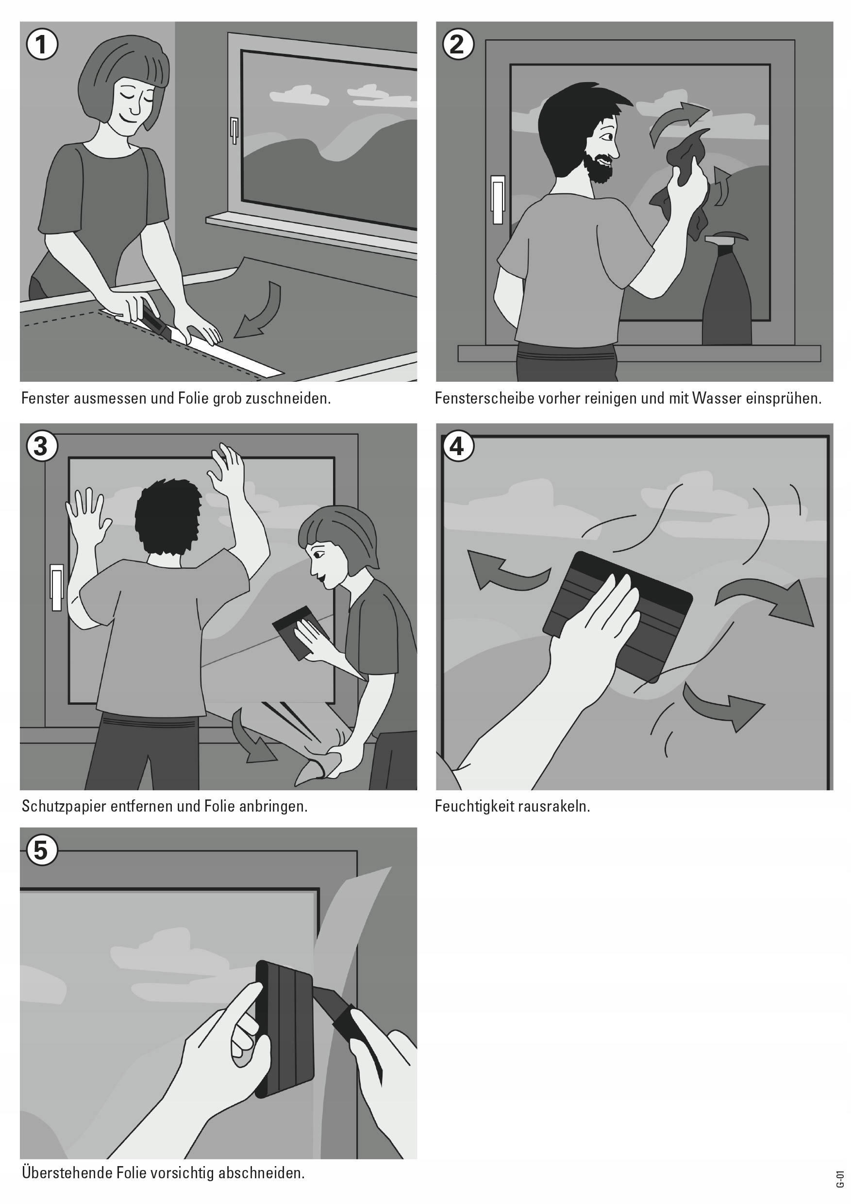 - Folię przycinamy z zapasem (1-2cm), tak aby z każdej strony wychodziła poza obręb szyby.