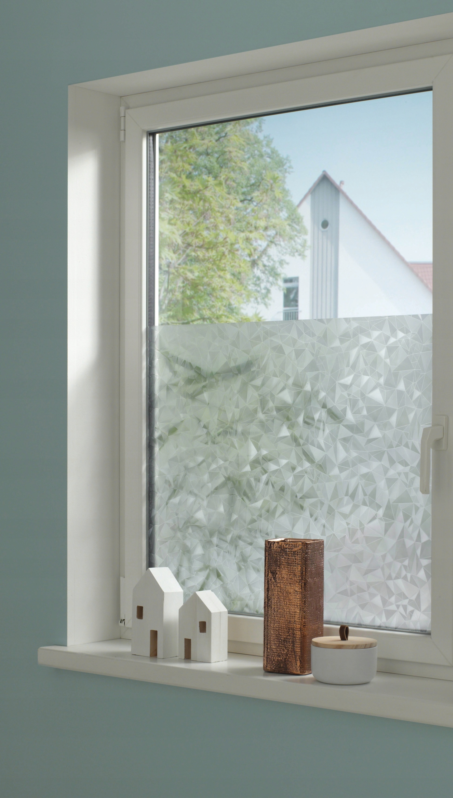 Statyczna folia okienna o matowej, mlecznej powłoce przylega bez kleju, może być usunięta bez pozostałości i może być ponownie użyta bez żadnych problemów. Statyczna folia okienna filtruje szkodliwe promienie UV, zapewnia przyjemny klimat w pomieszczeniu i zapobiega szybkiemu nagrzewaniu się pomieszczeń.